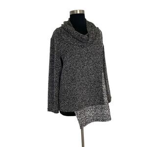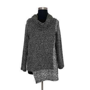 Matti Mamane XL Gray/Black White Top Cowl Neck Asymmetric Textured Art To Wear Lagenlook Office