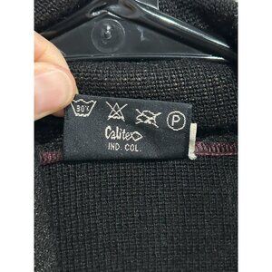 Mattie Black Beige Geometric Pattern Long Cardigan Jacket Fringe Scarf Sz Large