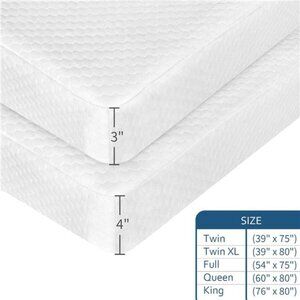 🧿Various Size Mattress Topper Cover: To meet the difference needs, we provide different sizes cover of memory foam mattress with ykk zipper for various foam mattress topper: Twin (39” X 75”), Full (54” X 75”), Queen(60” X 80”), King(76” X 80”), thickness height can cover 3'' - 4''.