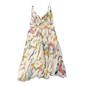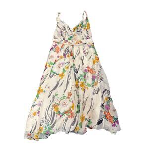 Matty M 100% Silk Floral Maxi Dress with Belt White Multicolor Size Medium