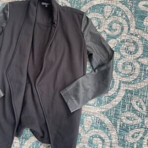 Matty M Black Knit Open Front Jacket with Faux Leather Sleeves