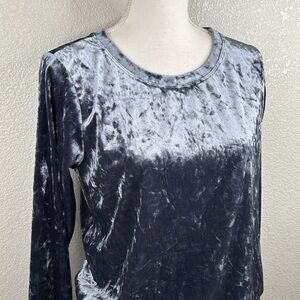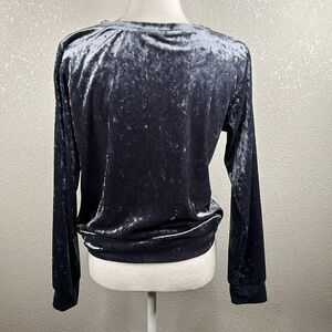 Matty M Blue Crushed Velvet 90s Y2K Long Sleeve Crewneck Top Size Small