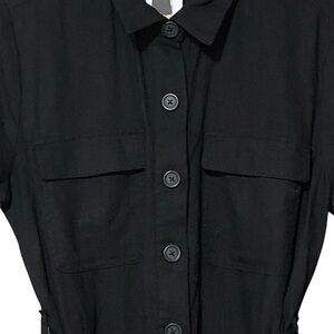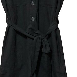 Matty M Linen Blend Button Front Romper L Black Belted Multi Pocket NWT