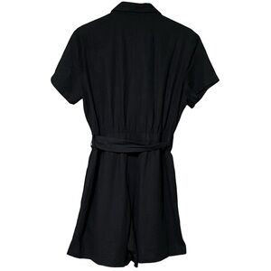 Matty M Linen Blend Button Front Romper L Black Belted Multi Pocket NWT