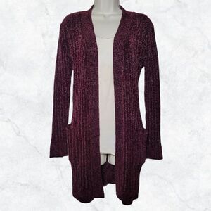 Matty M. Maroon Cable Knit Ribbed Velvety Soft Open Front Sweater Cardigain;