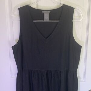 Matty M black sleeveless tiered v neck linen dress with pockets size large