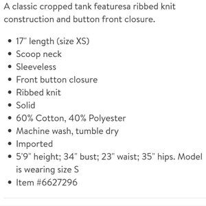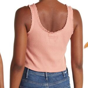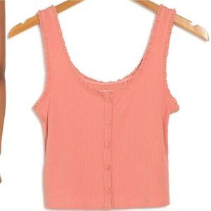 Mauby Ribbed knit cropped button front tank Burmuda Coral