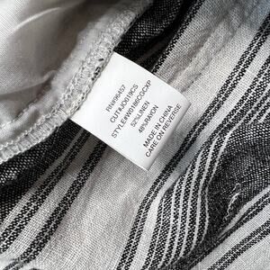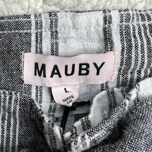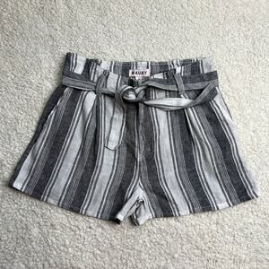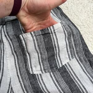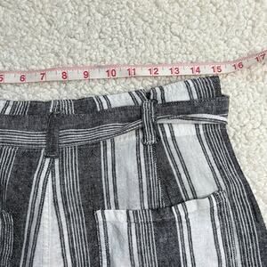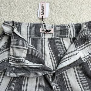 NWT Mauby Stony Black White Stripe Linen Blend High Rise Short Large. These shorts button and zip close with tie at waist. They are a linen blend with rayon and have two back pockets. Please see all photos. Approx measurements in pictures.