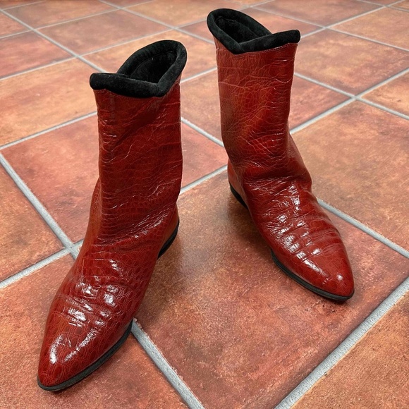 Features: Red, Crocodile Pattern, Pointed Toe, Western Style, Made in Italy