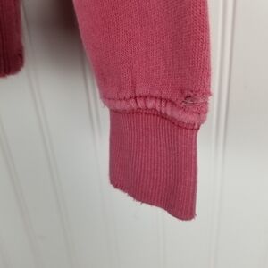 It has been well loved and lived in. - PLEASE SEE PHOTOS - The cuffs are worn and there are a couple holes - back of the neck, seam of the pocket, waist band - All of this adds to the look.
