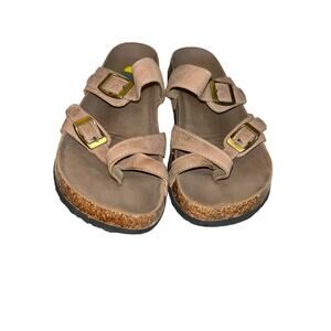 Maui Island Tan Slip On Buckle Sandals Women 9M Walk Comfort Beach Vacation