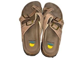 Maui Island Tan Slip On Buckle Sandals Women 9M Walk Comfort Beach Vacation. Gently used. Comes from a smoke free, pet free home. Thanks for looking!