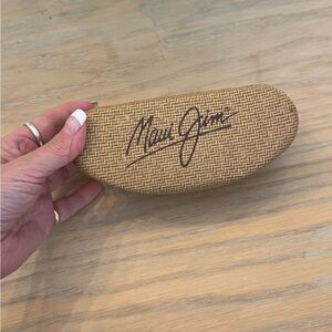 Woven sunglasses large clamshell hard case by Maui Jim. Includes a soft blue Maui Jim Tommy Bahama branded cleaning cloth.