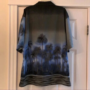 Maui Maui Mens Size Large Button Up Polyester Hawaiian Shirt Night Palms-