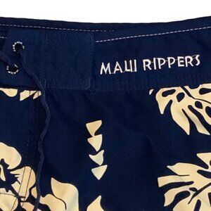 Maui Rippers Hawaiian Floral Board Shorts Mens Size 48 Navy Blue Hibiscus Print