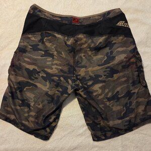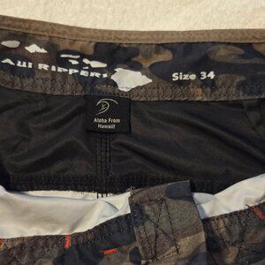 Maui Rippers board shorts, like new without tags. Camo pattern, velcro pockets on each thigh. printed size 34 but measures closer to 33-33.5" waist. Like new, price was $65 new, get it now at more than 50% off