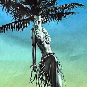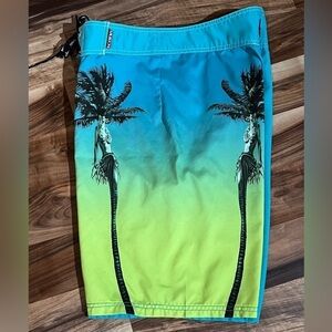 Maui & Sons HULA GIRL Palm Tree Blue Board Shorts - Limited Edition - RARE!