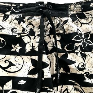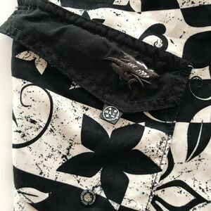 Maui & Sons Swim Trunks Mens Size 34 Black Flowers Board Shorts Bathing Suit