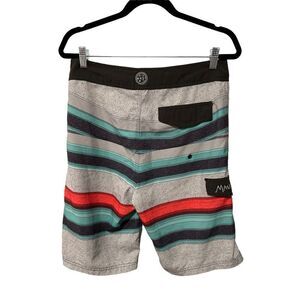 Maui and Sons 4 way stretch Black Shark Striped Trunks Board Shorts Beach size 30