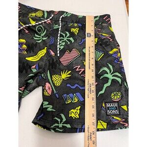 Maui and Sons Black Island Slice Swim Trunks Brief Liner Drawstring Men's XL