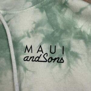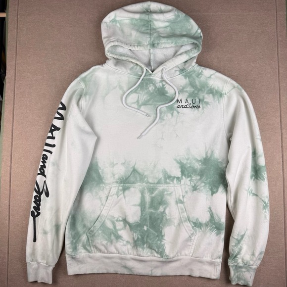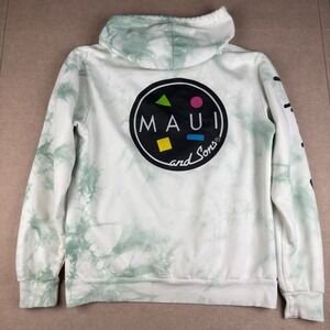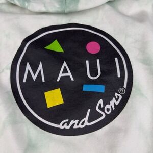 Maui and Sons Hoodie Men Small Green Tie Dye Logo Graphic Pullover Surf Style