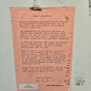 Mauline Henderson was a Florida based artist and founder of the Art Institute School and Gallery at Lakewood Plaza in Jacksonville where she taught drawing, oil painting and watercolor. Her work has been exhibited extensively and her paintings are in many private collections in this country and abroad.