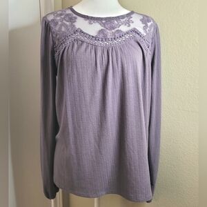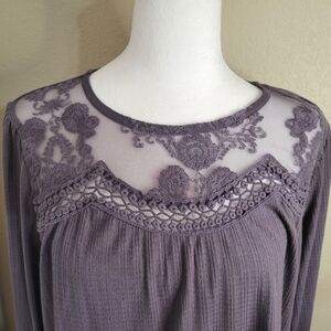 Maurice Balloon Long Sleeve Blouse, Size Medium, Lace Neckline