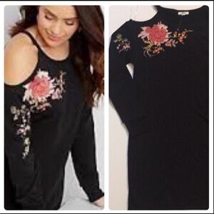 Maurice one side cold shoulder dress.Embroidered Flowers.