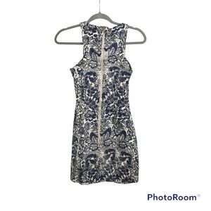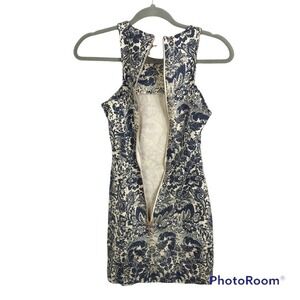 Maurice & Eve for Scoop blue and cream all over damask floral print dress XS