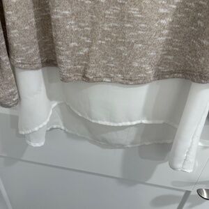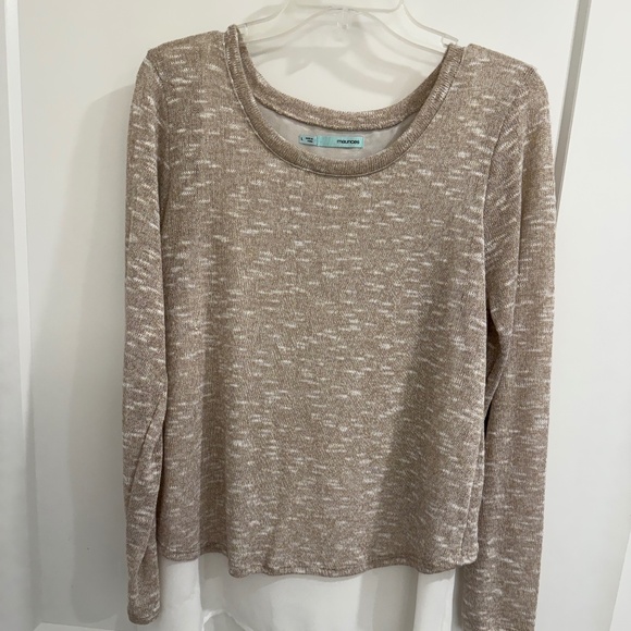Beautiful Maurice Gold thred sweater with chiffon at the edge of the sweater. Goldish Tan. Perfect for New Years.Large