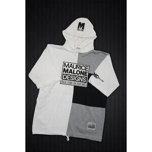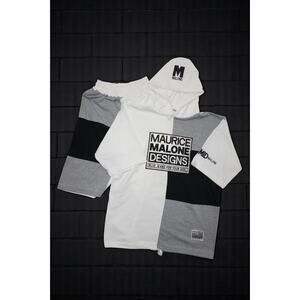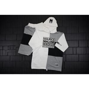 Maurice Malone Designs Colorblock Hoodie Shorts Set Men’s L White Gray Black MMI