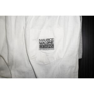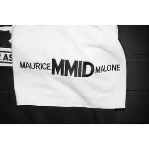 Step into bold vintage streetwear with this Maurice Malone Designs two-piece set, featuring a colorblock hoodie and matching shorts. This rare men’s size large ensemble showcases a white, black, and gray panel design with standout branding across the chest, hood, and shorts. Iconic “Blue Jeans for Your Ass” slogan patch on both top and bottom. Hoodie includes an adjustable drawstring hem for a custom fit.