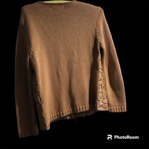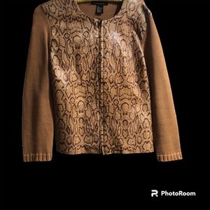 Maurice Sasson Woman Sweater Brown Leather Cotton Zip Up Jacket Sz L