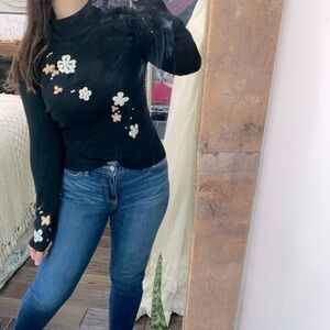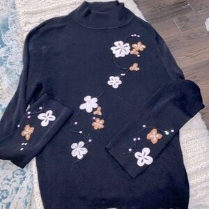 Maurice Sassoon black knit sweater embroidered floral detail size small
