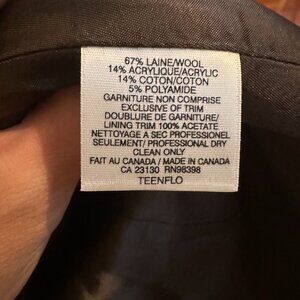 Beautifully made, perfect condition, beautiful lining, wool. Cozy but lightweight. It's a blend of purple / grey / blue.