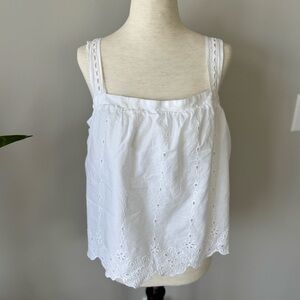 Chic white blouse with delicate eyelet lace. Ideal for casual or dressy looks.