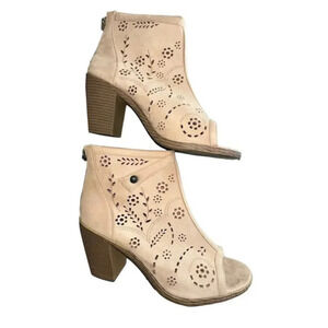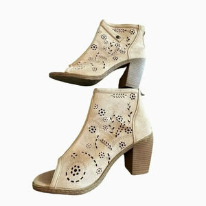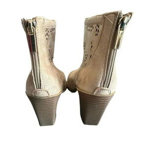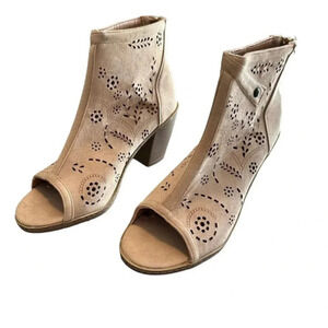 Maurice women's 8,5M Lazer Cut Boots Beige Perp Toe Zip Ankle Booties
