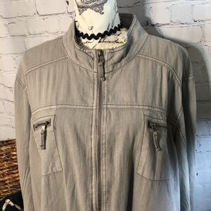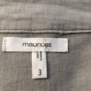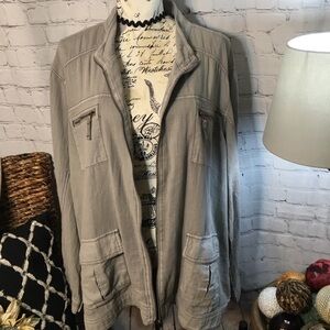 Light gray zipper front with front pockets snap cuff sleeves. Maurice’s size 3 that equals 24/26. Gently preowned condition. Like new.
