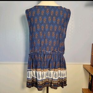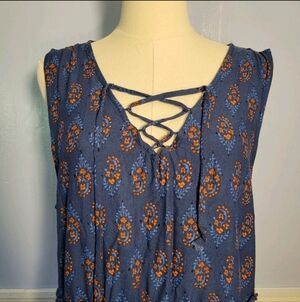 Maurices 0X Blue Orange Paisley Crisscross V Neck Ruffle Flowy Sleeveless Blouse