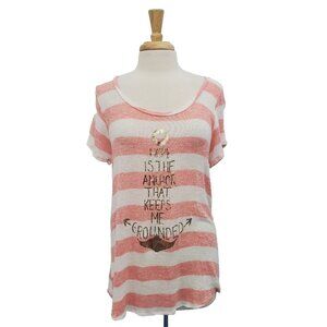 Maurices plus size 1X top, womens 14/16 striped anchor shirt, pink white nautical blouse, cruise wear anchor tee, casual summer top, stretchy rayon blend shirt, scoop neck anchor graphic, inspirational quote shirt, beach casual striped top, lightweight knit tee, festival nautical shirt, boho chic summer tee, vacation cruise anchor graphic top
