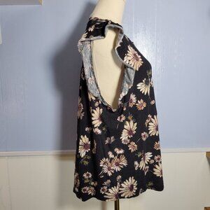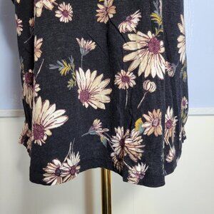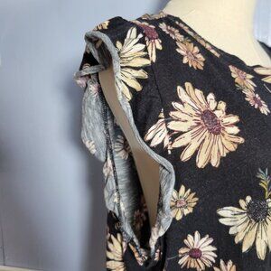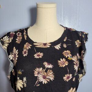 Maurices 1X Black Cream Yellow Floral Crewneck Ruffle Cap Sleeve Summer Blouse