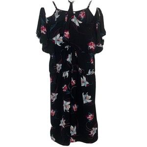 Maurices Dress Size: Maurices 2 (2X) Color: Black with floral design Elastic waist; Off the shoulder; Adjustable Spaghetti Straps; Lined; Knee Length Condition: Excellent condition! No stains, holes, or tears. Preowned.