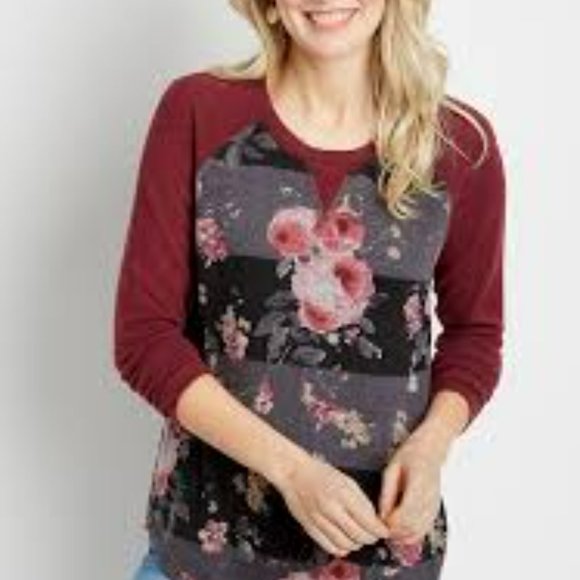Maurices 24/7 Berry Floral Raglan Sleeve Cozy Baseball Tee size 3x