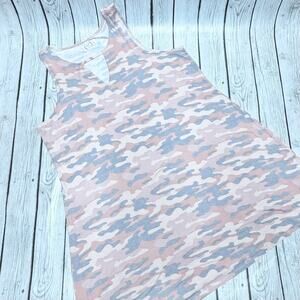 In excellent condition, this dress features a flattering keyhole neckline and a trendy camo print that's perfect for casual outings or dressy events.