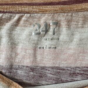 Maurices 24/7 Dawson Maroon Yellow Pink White Striped Drop Shoulder Tee Large