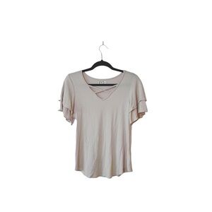 Maurices 24/7 Light Pink Strappy Front Flutter Sleeve Top Small Women’s