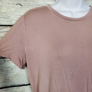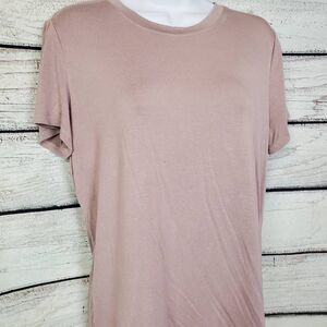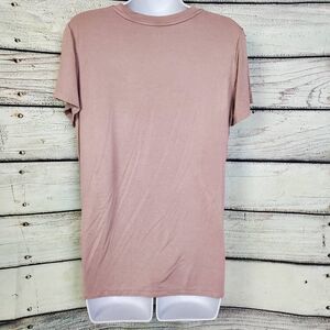 Soft and stretchy rose/mauve short sleeve tee from Maurices 24/7, size Medium. Made with rayon and spandex blend for lightweight comfort. Great closet staple for layering or everyday wear.