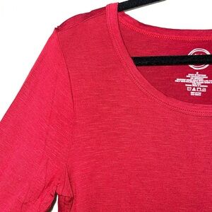 Maurices 24/7 basic red tee. In excellent condition! Crew neckline. Long, fitted sleeves. Wide bottom hemline. Semi-sheer. Bright red color. Size small.