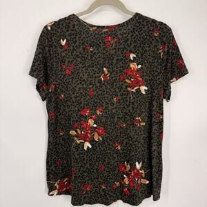 Maurices 24/7 Short Sleeve Tee Size Large Gray Animal Colorful Floral crewneck