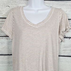 Maurices 24/7 Tan White Stripe Soft Cotton Modal Tee M